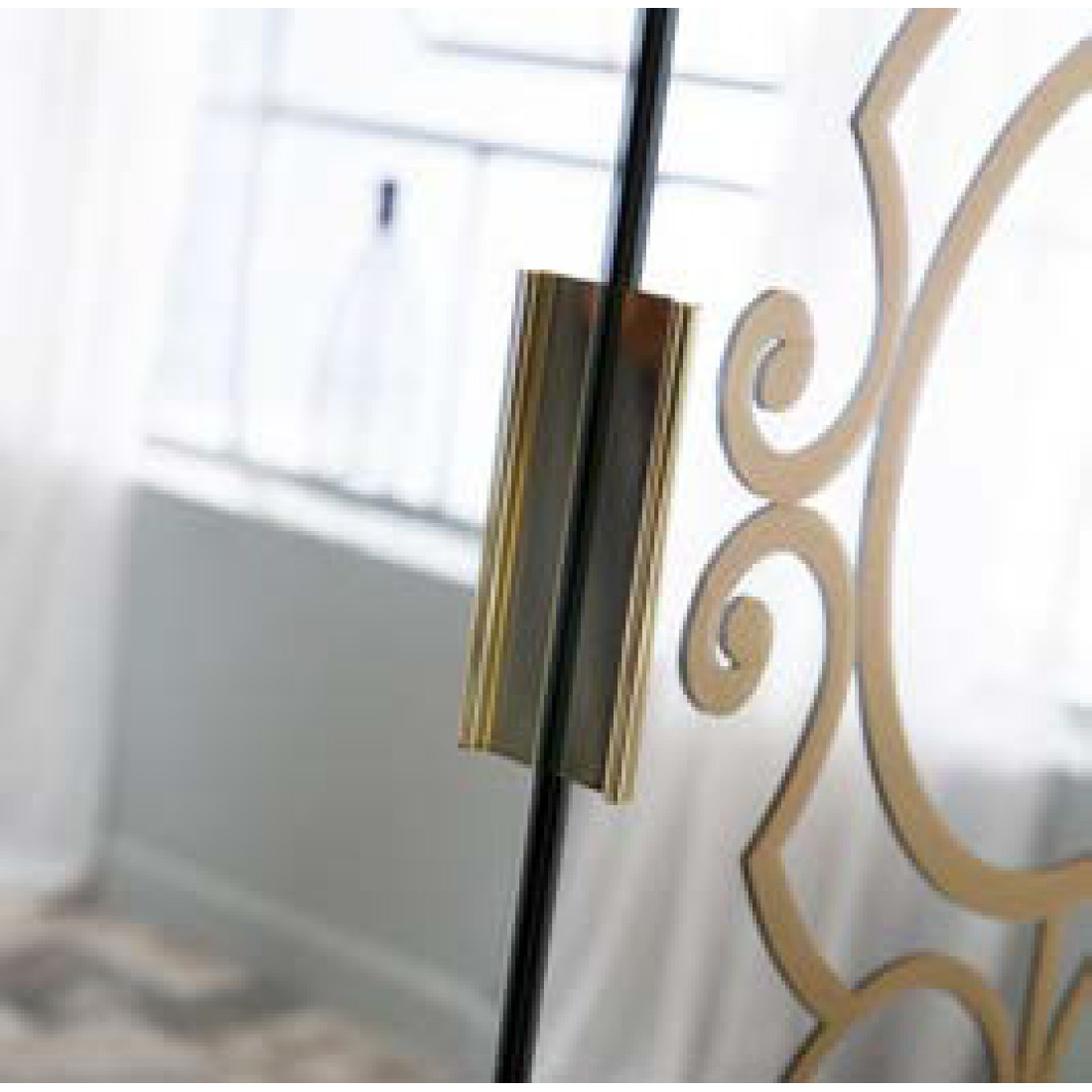 Шкаф 2-х дверный с глухой дверью и зеркальной Неаполь Ясень анкор светлый (патина "серебро")