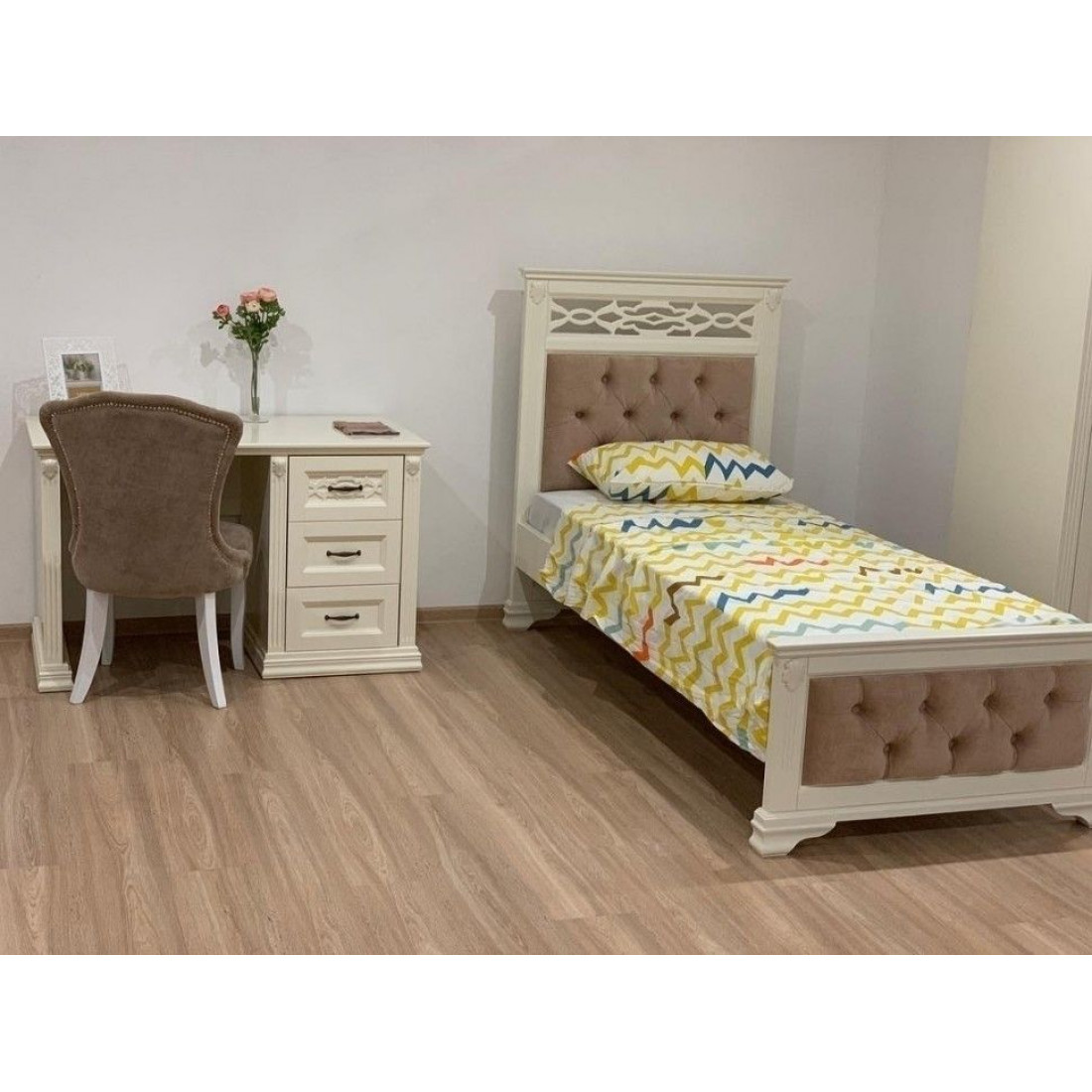 Кровать оснащена ортопедическим основанием для матраса — гнутыми ламелями.