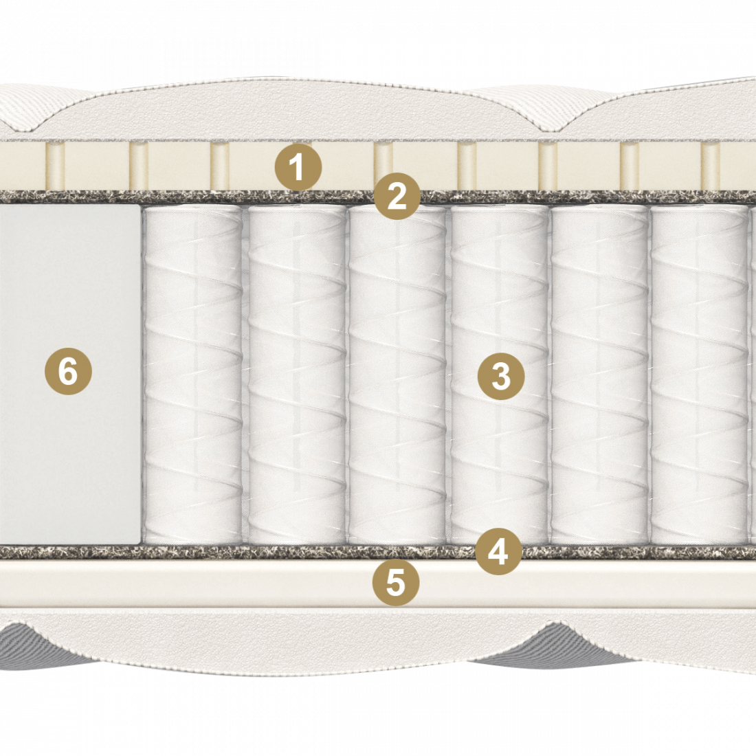 Двусторонний пружинный матрас со сторонами различной степени жесткости. С одной стороны расположен натуральный латекс, «дышащий» и экологически чистый материал, обеспечивающий идеальную поддержку контуров тела, а с другой – его аналог, Natural Foam, имеющий чуть более плотную структуру.