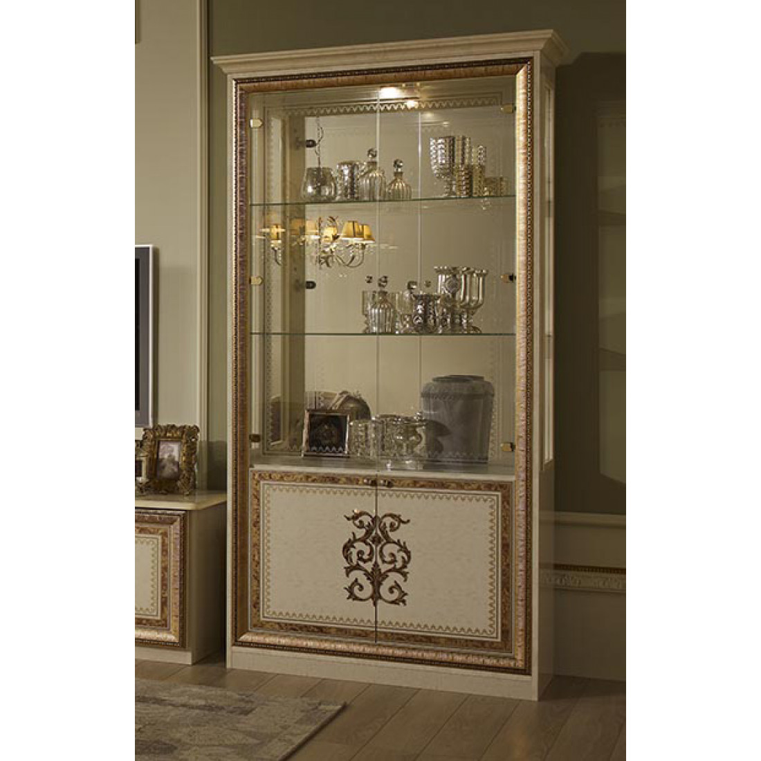 Шкаф-витрина двухдверный Анита (бежевый глянец)