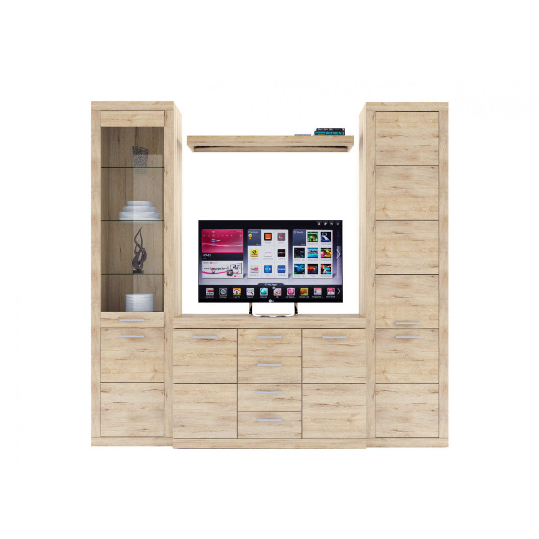 - 4 варианта тумб RTV с выдвижными ящиками на шариковых направляющих. 2 размера надставных полок для RTV-тумб (полка TVB и полка TV), позволяющих установить выше телевизор. Варианты навесных полок, соответствующих по размеру тумбам для телевизора. Тумба RTV 2S2NL имеет глубину 351 мм, что позволяет составить модули, имеющие такую же глубину, в одну линию без выступающих элементов.