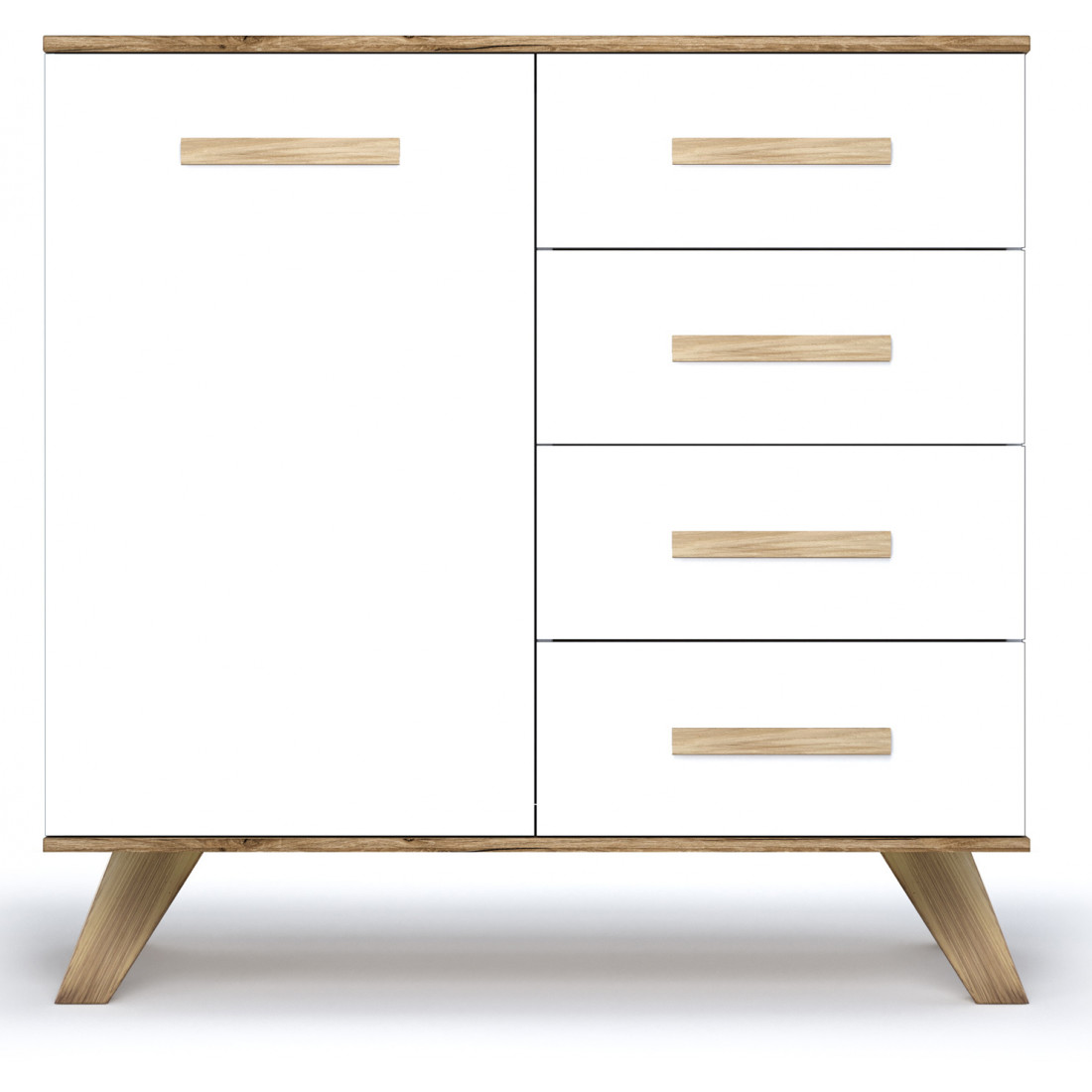 - 4 выдвижных ящика и 1 отделение с распашной дверцей: