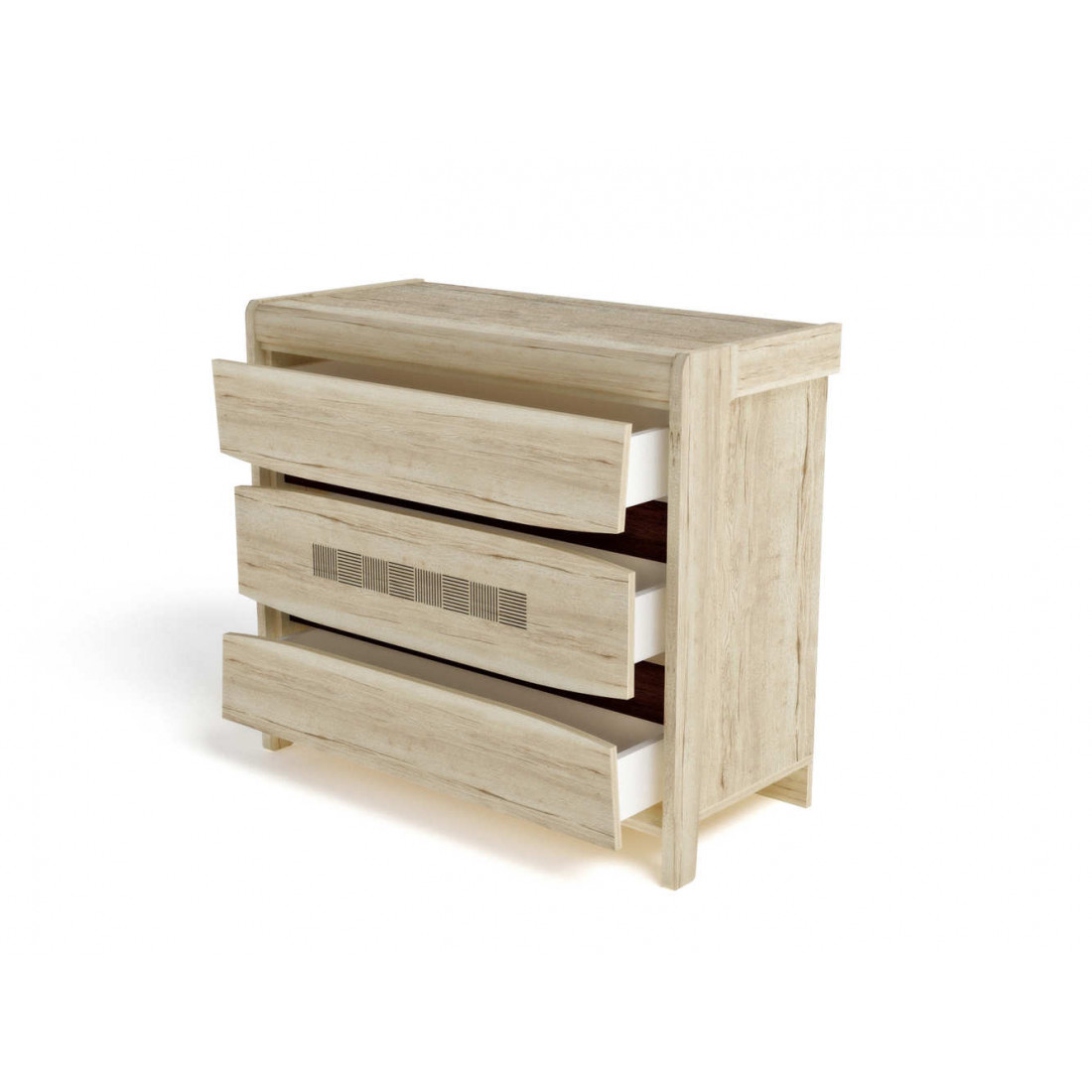 Комод малый Мале - обладатель лаконичного и свежего дизайна. Он является представителем коллекции «Мале». В этой коллекции особое внимание уделено внешнему виду и тактильным ощущениям от прикосновения к мебели, схожей с натуральным деревом по рисунку и шероховатости. Деко