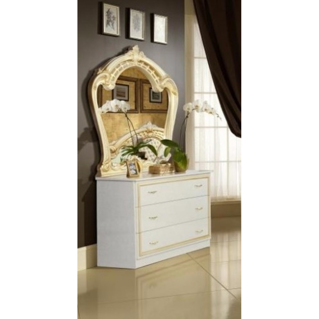 Комод с зеркалом Ольга (беж) от Российской фабрики «ДИА мебель» выполнен в безупречном элегантном бежевом цвете с сочетанием золотых вставок и матовым покрытием. Имеет четыре удобные и вместительные выдвижные полки. Маленькие ручки цвета золота придадут атмосферу роскоши. Такой комод поможет Вам с экономить место и порадует своей многофункциональностью. Коллекция "Ольга" подойдет для настоящих ценителей классического стиля.