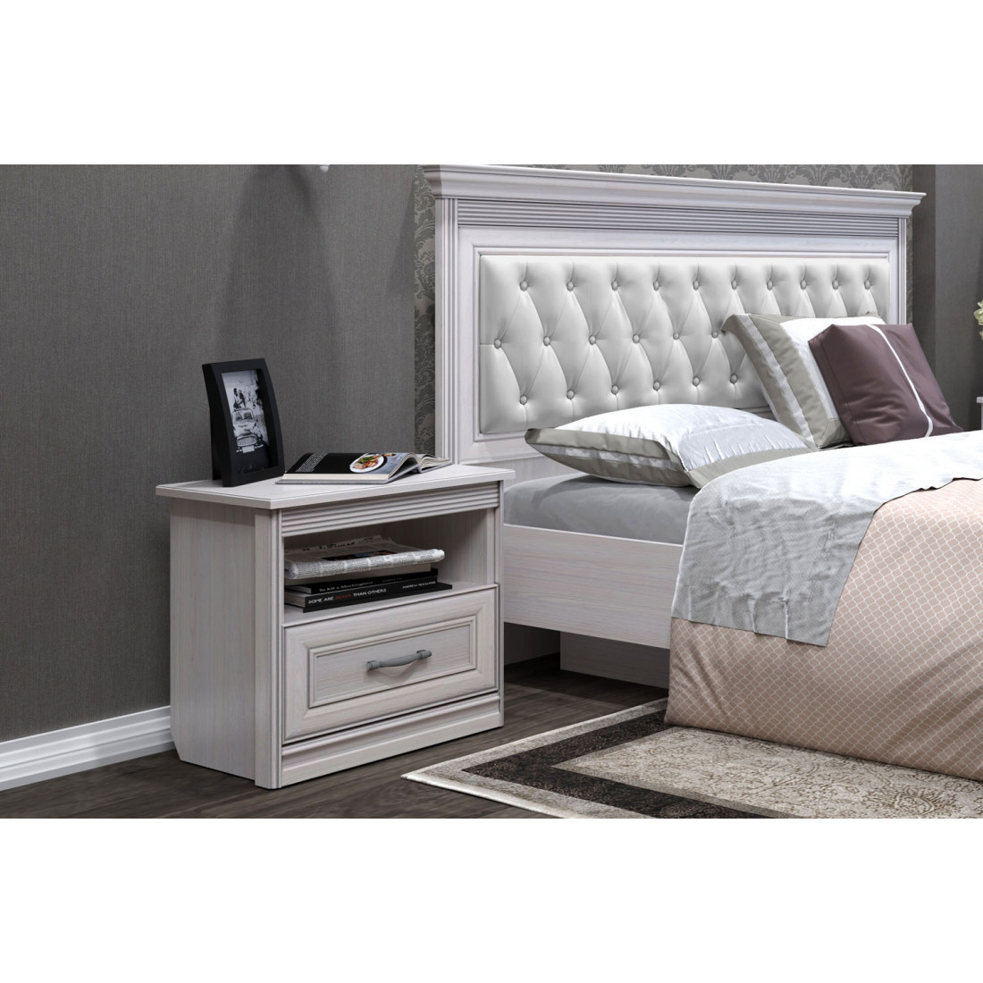 Тумба прикроватная Неаполь Ясень анкор светлый (патина "серебро")