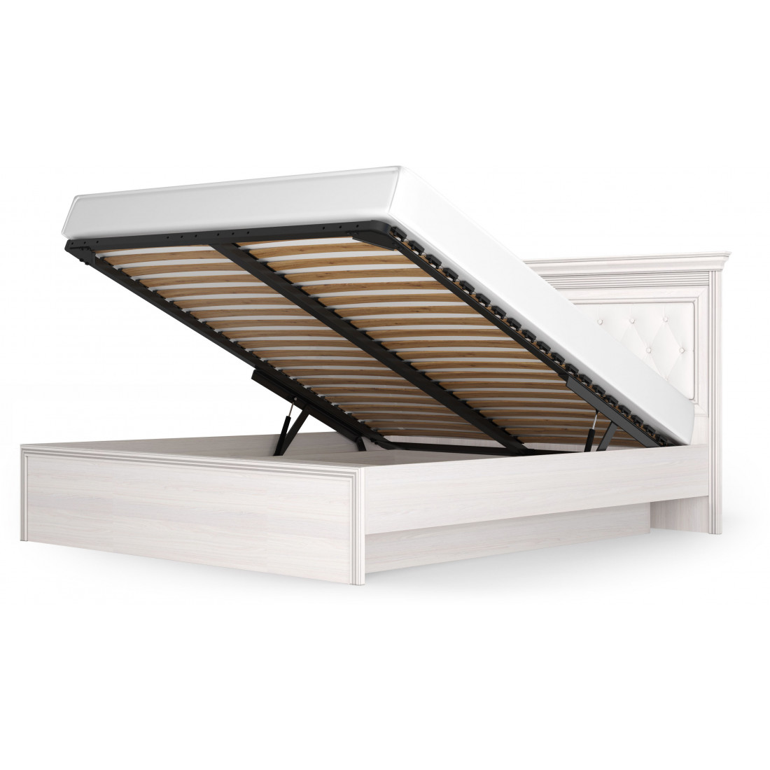 Кровать 1400/1600/1800 с подъемным механизмом Неаполь Ясень анкор светлый (патина "серебро") экокожа polo белая