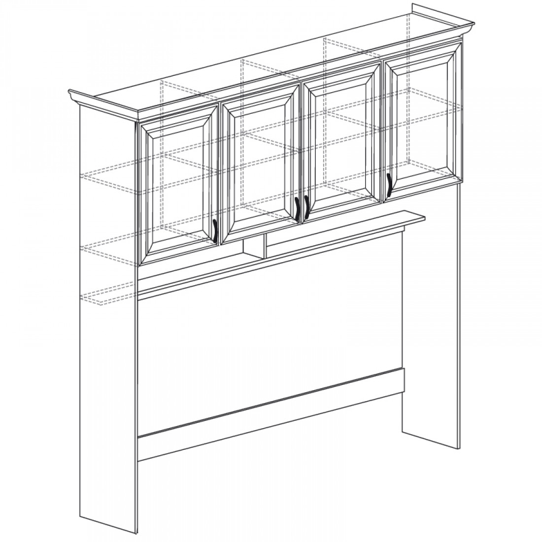 Фасады: МДФ, декор – дуб ридинг, рисунок, патина, стекло с фацетом и рисунком, зеркало