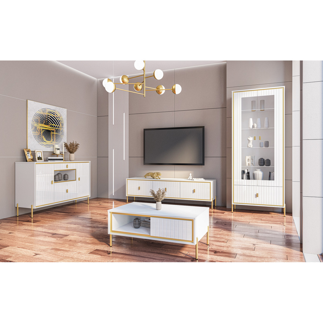 Витрина Люксор послужит прекрасной основой гостиной в классическом интерьере.
