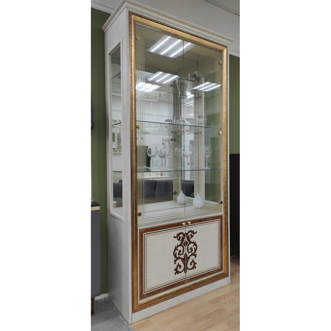 Шкаф-витрина двухдверный Анита (бежевый глянец) от Российской фабрики «ДИА мебель» Выполнена в цвете бежевый глянец с отделкой золотых фасадов. Классический стиль придают интерьеру неповторимую уникальность и роскошь. Изгибающиеся линии придают легкость и воздушность гостиной либо столовой. Коллекция "Анита" придаст вашему дому экстравагантность и принесет свежие нотки.
