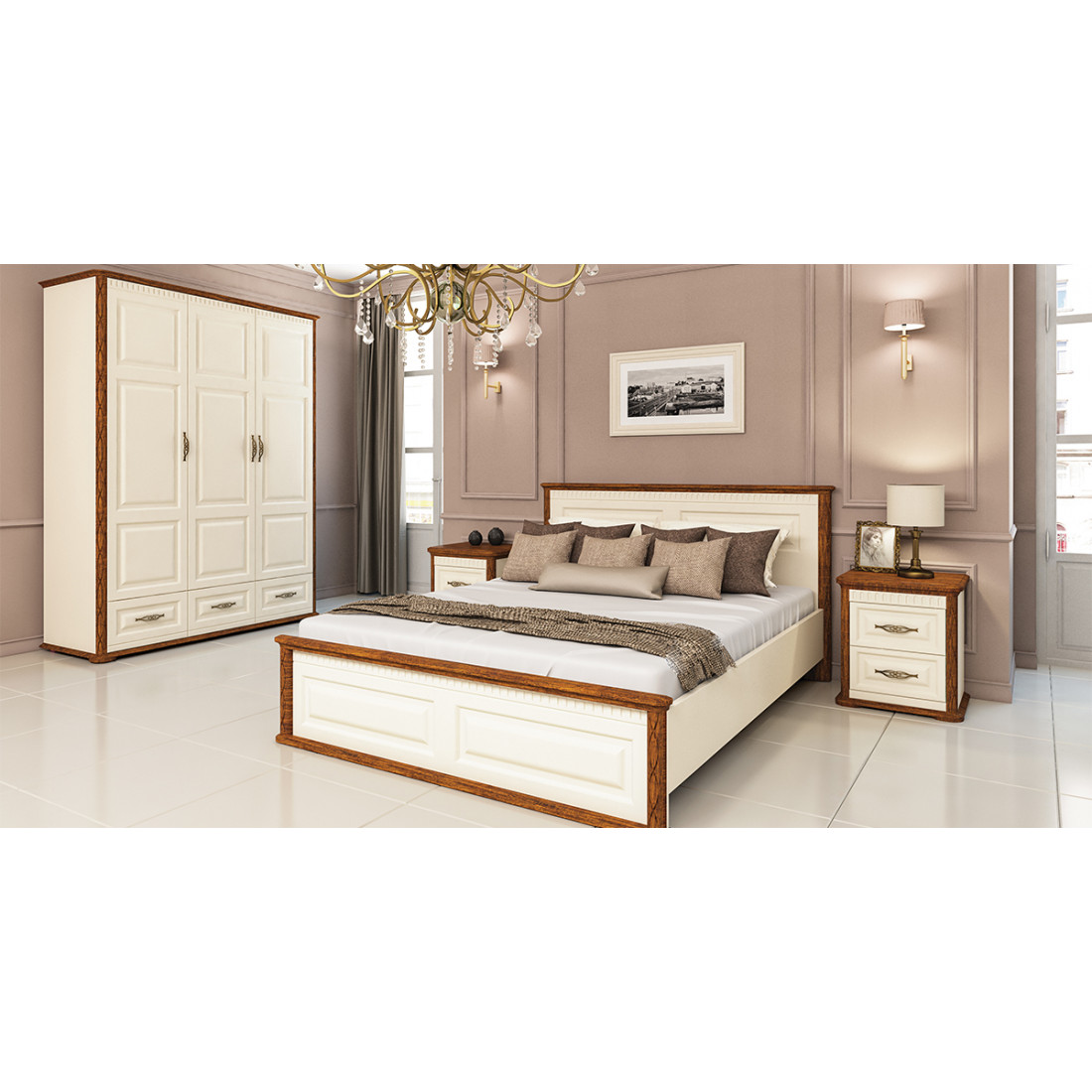 Спальня Марсель выполнена в приятных тонах с сочетанием древесной структуры Дуба кантри и нежного кремового оттенка. Вместительные гардеробные шкафы снабжены системой плавного закрывания. В выдвижных ящиках установлены немецкие направляющие с демпфером Quadro, Hettich. Дополнительный модуль-ящик для кровати добавит еще больше места для хранения. Для придания большего визуального эффекта, витрины комбинированных шкафов выполнены с фацетом. Изготовленная из материалов высокого качества, коллекция Марсель - превосходный выбор для Вашего дома.