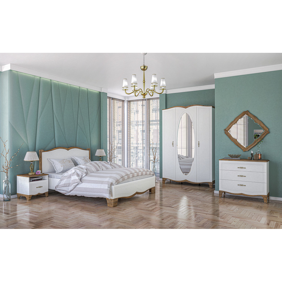 - Цвет фасада - «белый полуглянец» + «прованс» – МДФ-16мм, спинка у еровати МДФ 38мм Kronospan Szczecinek (Польша) + ПВХ Alfaterm (Италия).