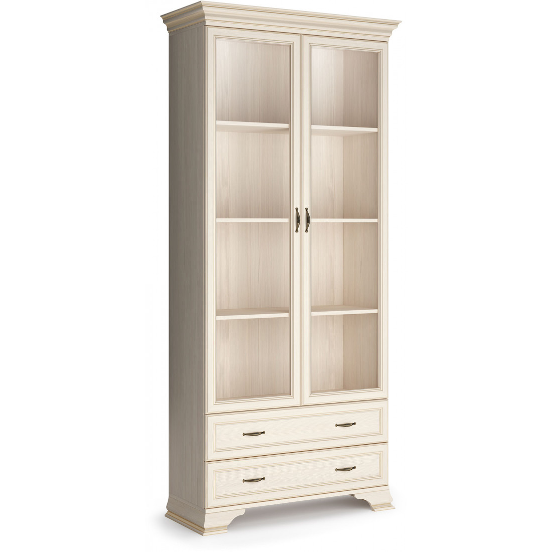 Коллекция производится в текстуре «бодега белый» с эффектом золотого патинирования. Облик «Сиены» дополняют рамочные фасады и карниз в классическом стиле, а также эффектные опоры из МДФ. Мебель комплектуются металлической лицевой фурнитурой премиум-класса в цвете «старая бронза» и надежной крепежной фурнитурой.