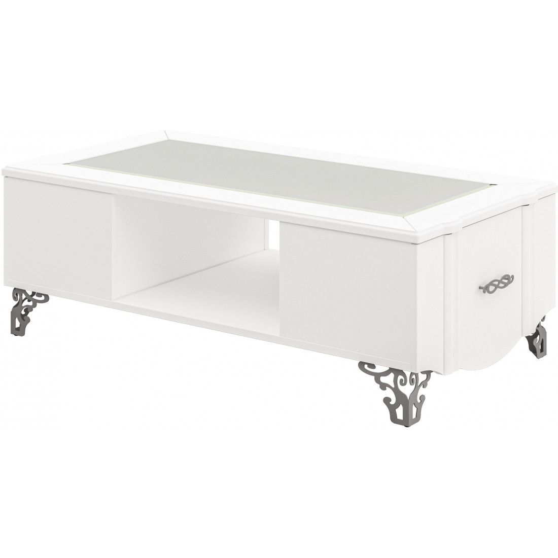 Стильный кремовый журнальный столик МН-025-07 серии София от фабрики Мебель-Неман обладает устойчивой вместительной конструкцией с местами для хранения в виде двух выдвижных ящиков и открытой центральной ниши. Вставка в виде матового стекла на горизонтальной поверхности, изящные металлические ножки добавляют лаконичному дизайну изысканности и элегантности. Модель может исполнять роль удобного кофейного столика (размеры по столешнице 1200х600 мм).